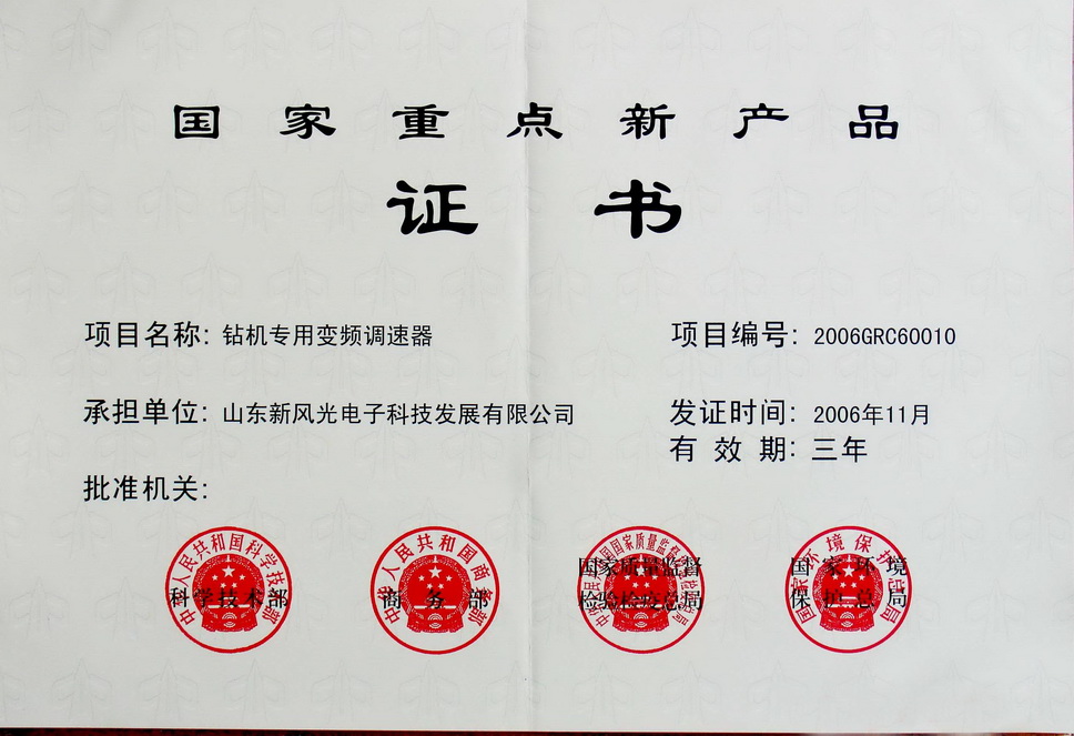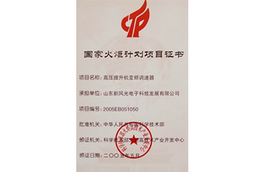 高壓提升機(jī)變頻器國家火炬計劃證書