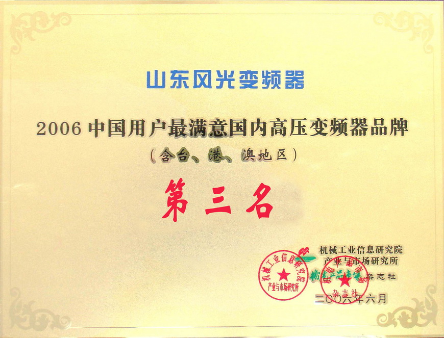 2006年中國用戶滿意國內(nèi)高壓變頻器品牌