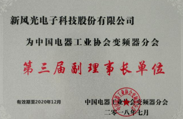 中國電器工業(yè)協(xié)會變頻器分會第三屆副理事長單位